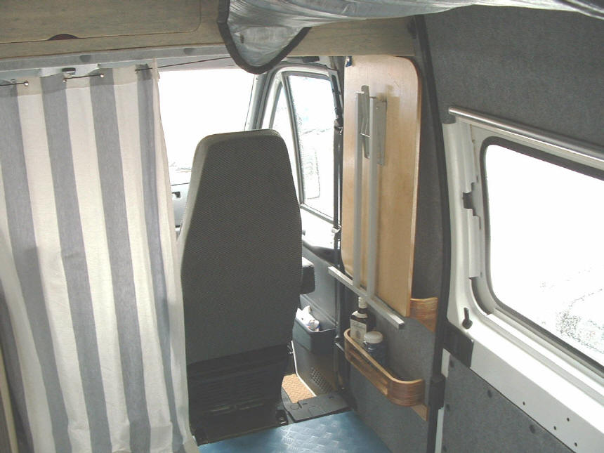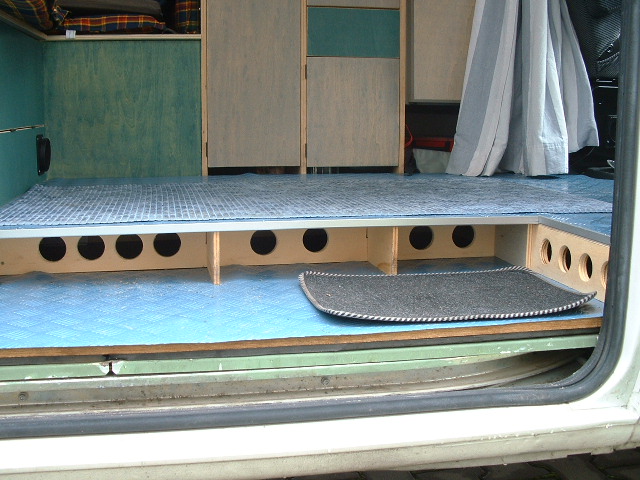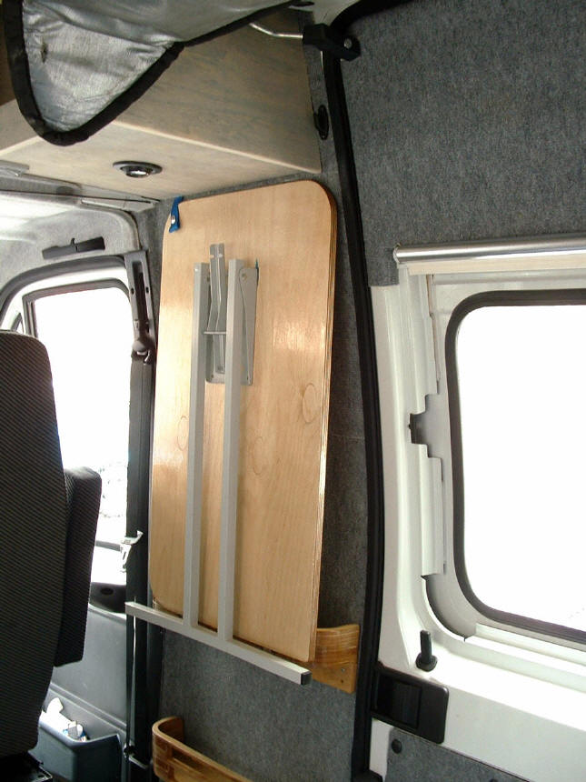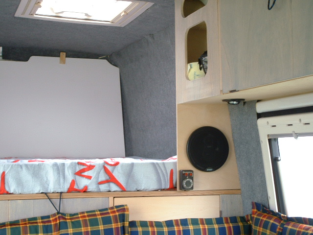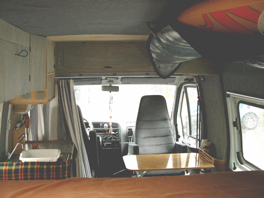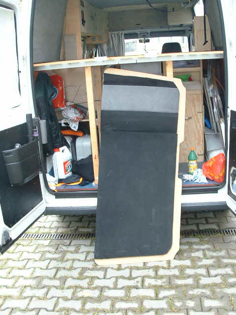 Der ehemals dort befindliche Kleiderschrank fehlt uns nicht sonderlich und es entsteht ein sehr gutes Raumgefühl durch den gewonnenen Platz. Für einen Kastenwagen sehr geräumig. |