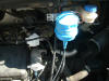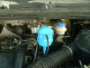 rechts im Bild der Behälter für die Bremsflüssigkeit. Dahinter ist ein großes rundes goldenes Ding. Unterdruck für den Bremskraftverstärker. Von da kommt auch der Schlauch, den man auftrennen muß, um sich mittels T-Stück in den Unterdruckkreislauf einzuhängen. Das T- Stück ist auf dem nächsten Bild gut zu sehen.