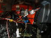 Hier sieht man nun schon die Verbindung zwischen dem Gasbowdenzug und dem Bowdenzug des Servosgerätes. Als Verbindung dient der im Bild goldene Klemmblock, den ich ziemlich dicht am Dehnelement (Kaltstart) angebracht habe.