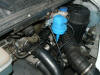 Hier die Lage des Servogerötes mal von links gesehen. Die Befestigung an dieser Stelle ermöglicht die Verlegung des Bowdenzuges parallel zum Gasbowdenzug ohne größere Biegungen, was später für eine einwandfreie Funktion des Tempomaten wichtig ist.