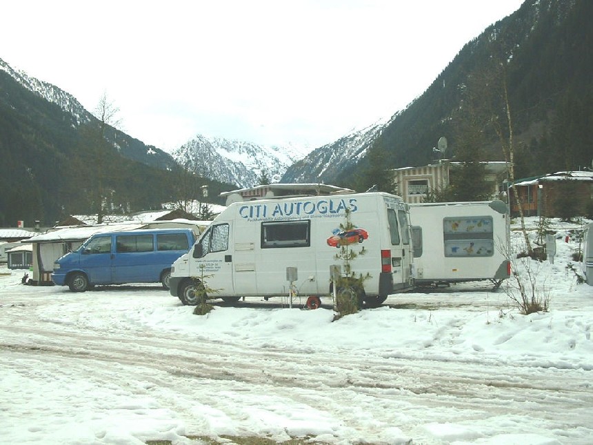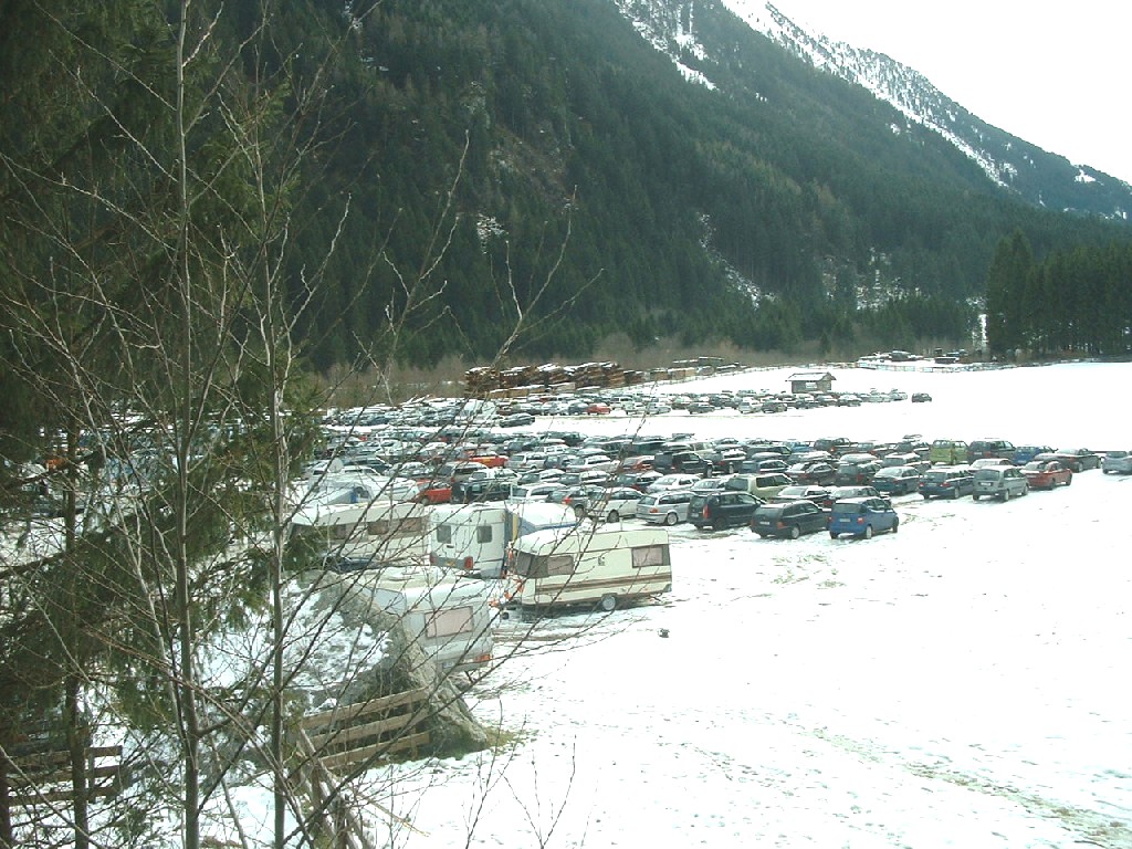 Bilder zum Vergrößern anklicken ( Die Bilder sind 200-300 kB groß): Der Campingplatz liegt in Volderau, ca. 15 km von der Talstation Mutterberg der Stubaier Gletscherbahnen entfernt. Er verfügt über mittlere Ausstattung aber hervorragende Gastronomie von 18 bis 20 Uhr. Der Skibus zum Mutterberg fährt regelmäßig, aber diesmal schon ab 8.30 Uhr total überfüllt und fährt deshalb durch. In diesem Jahr waren alle kleinen Skigebiete (Schick 2000, Elferlifte, Serleslifte) geschlossen, sodass sich alles auf dem Gletscher abspielte. In normalen Jahren ist das sicher anders. Wir mussten also um 8 Uhr am Skibus sein, um gleich mitzukommen und ohne Wartezeiten an den Gondeln auf den Gletscher zu gelangen. Auf dem Gletscher selbst hatte sich dann alles etwas entspannt. Ab 27.12. waren dann gegen 10 bzw. 11 Uhr auch am Mutterberg alle Parkplätze belegt. Die Wiesen neben dem Zeltplatz wurden dann in Parkplätze umfunktioniert und die Skibusse pendelten zwischen Mutterberg und Volderau. |